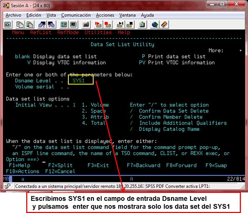 La opcion DSLIST es una de las utilidades mas usadas de ISPF, es el explorador de datasets, te permite realizar varias opciones sobre los datasets que en otros post seran mostrados.